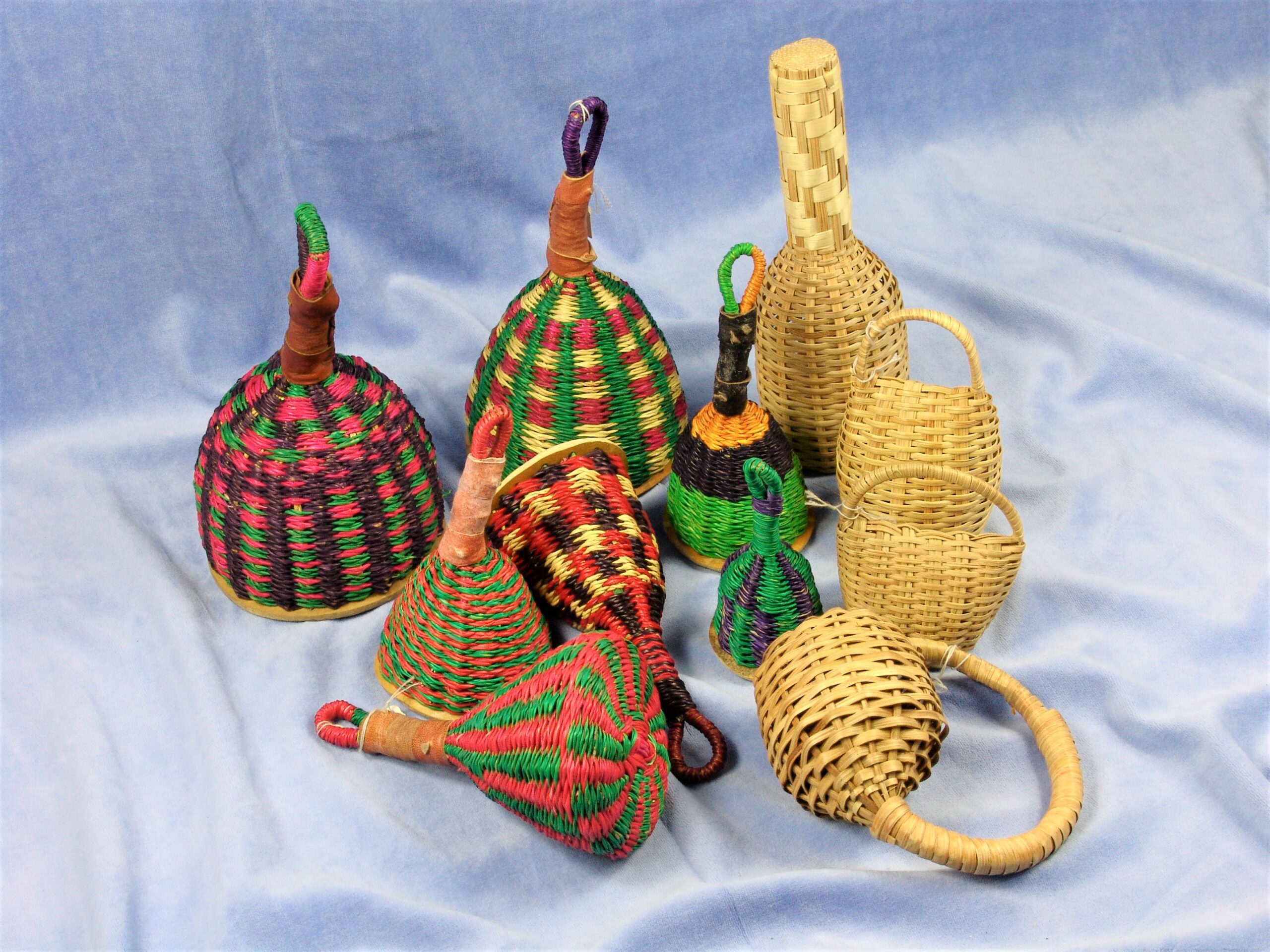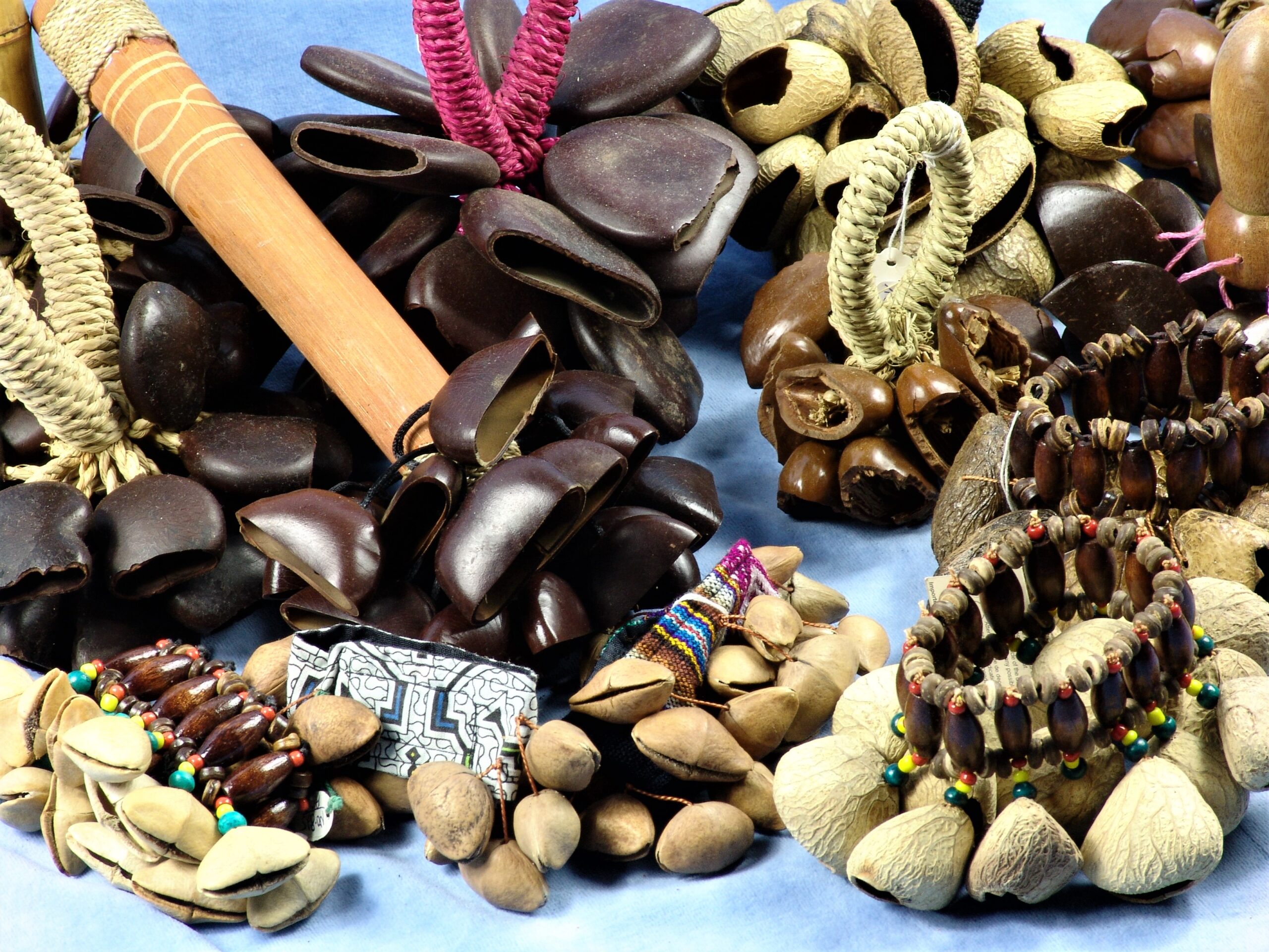 Rasseln aus Bündeln von Bohnen, Nüssen, und anderen Früchten,